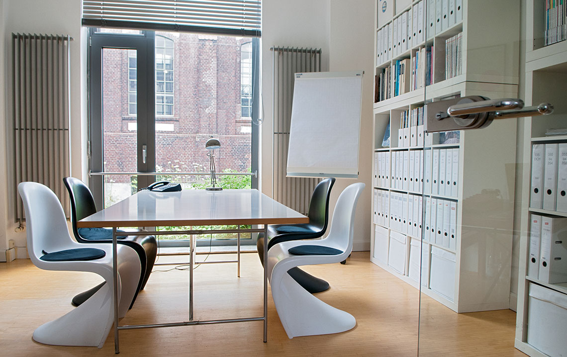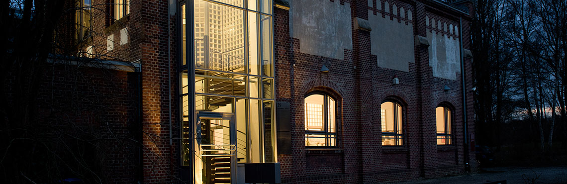 Das Büro liegt im alten Trafohaus der Zeche Waltrop. Die Mischung industrieller und moderner Architektur verleiht dem Ort einen ganz besonderen Reiz.
